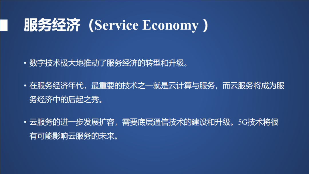 讲到服务经济大家就会想一个问题,我们实际上在整个GDP里面,服务行业比例是比较高的,可是我们的服务行业质量是属于比较低的,高质量的比较少。举个例子我们国家金融科技也是服务经济,但我们高端的金融科技公司非常少,我们还是给你买买菜,提供基本的日常生活服务,这跟我们做高端服务距离还是非常远的,可以说刚刚起步的公司希望得到技术上的支撑,是不是有中介提供服务呢?这个也没有,因此我们服务经济的发展趋势应该走向高端服务,走向实体经济服务。