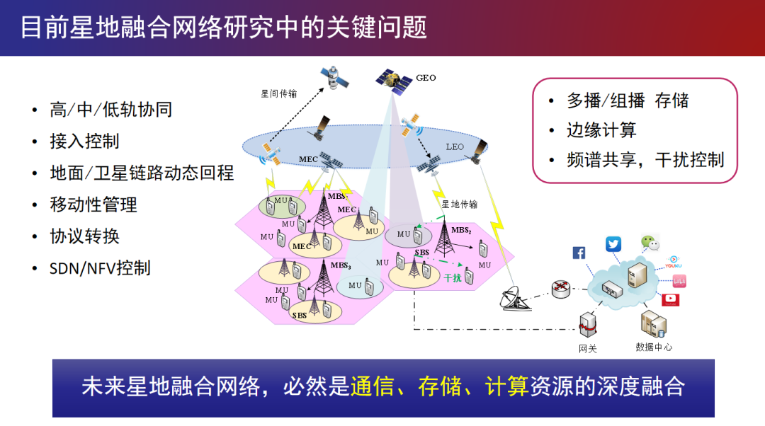 我的研究主要是在网络的存储计算以及通信资源的融合,这个也是九个关键问题中间的三个比较重要或者是核心的一些基础性的途径。未来的星地一体化网络必然通信存储计算资源深度融合的网络。