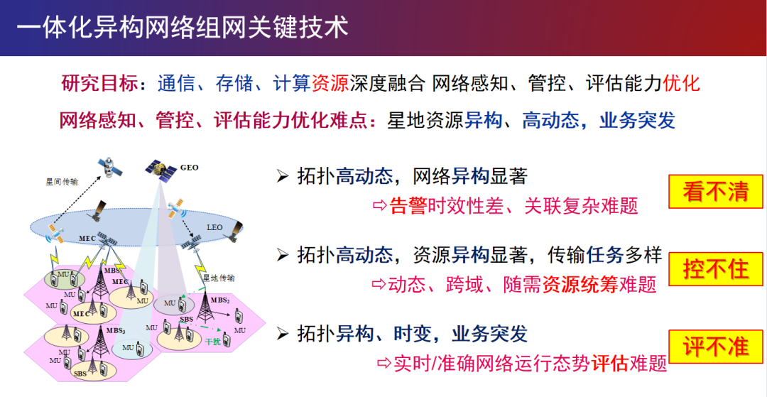 所以我们前期的研究目标包括现在正在开展的目标主要围绕通信、存储、计算资源深度融合,希望对网络感知、管控、评估能力进行优化。