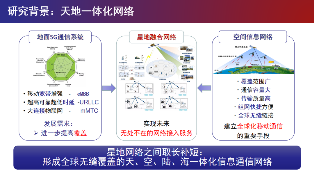 我研究的着眼点就是星地融合网络,希望能够取长补短形成天、空、陆、海一体化的信息通信网络提供一个实现的途径。