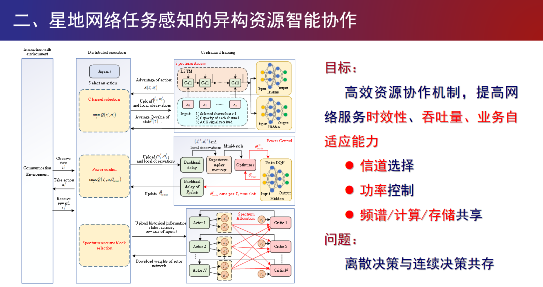 我介绍一下我的研究工作,我研究的天地一体化网络,前期研究是基于博弈论,像张萌老师说的方法来做资源配置和协同优化,但是近年来随着智能化技术的引用,对网络组网性能的提升以及传统模型分析方法解决不了都有显著的优势,这两年我也是把智能化的技术引入到网络的组网优化当中。