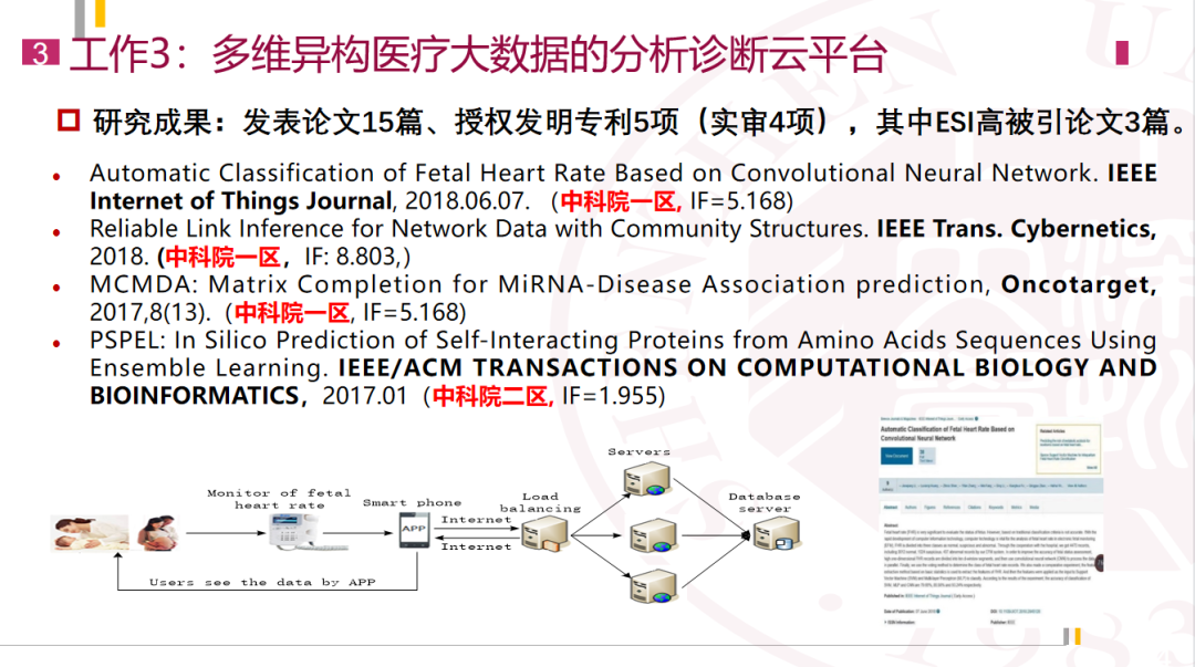 这是我们在前期设计的小云诊箱,目前依托中兴做的非常不错,不仅在国内,在非洲地方也在使用。这里我们团队在前期做了一些探索的工作,比如软硬件的协同,这里怎么把噪声去掉,这里还涉及了各类滤波器,同时要把一些特征值提取出来。这里不多展开,因为后面发了论文。我们再把它设计到硬件上,这个是我们前期在发的各类论文。因为在学校里面,我们做出来的这些都是实实在在的,后面还带着学生参加比赛,也拿到了特等奖。这个是基于硬件的,当然这里的前期工作也得到了一些认可,后面有些国内外学者在跟着我们往下走。