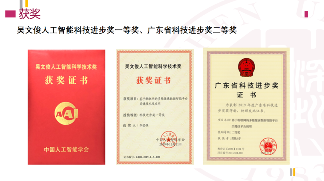 我们前面也得到了一些肯定,比如我牵头拿了吴文俊人工智能科技进步奖一等奖、省进步奖。在疫情期间已经常态化,其实很多需求是医院给我们提出的分析,我们也知道疫情期间医生都穿着口罩,戴着口罩没有办法听诊分析。钟南山院士当时在深圳设了一个团队,他过来说能不能做一些工作,因为当时医生全副武装,但不可能天天到CT,把听诊这一块做成智能听诊,他说能不能把这些听诊信号引出来。